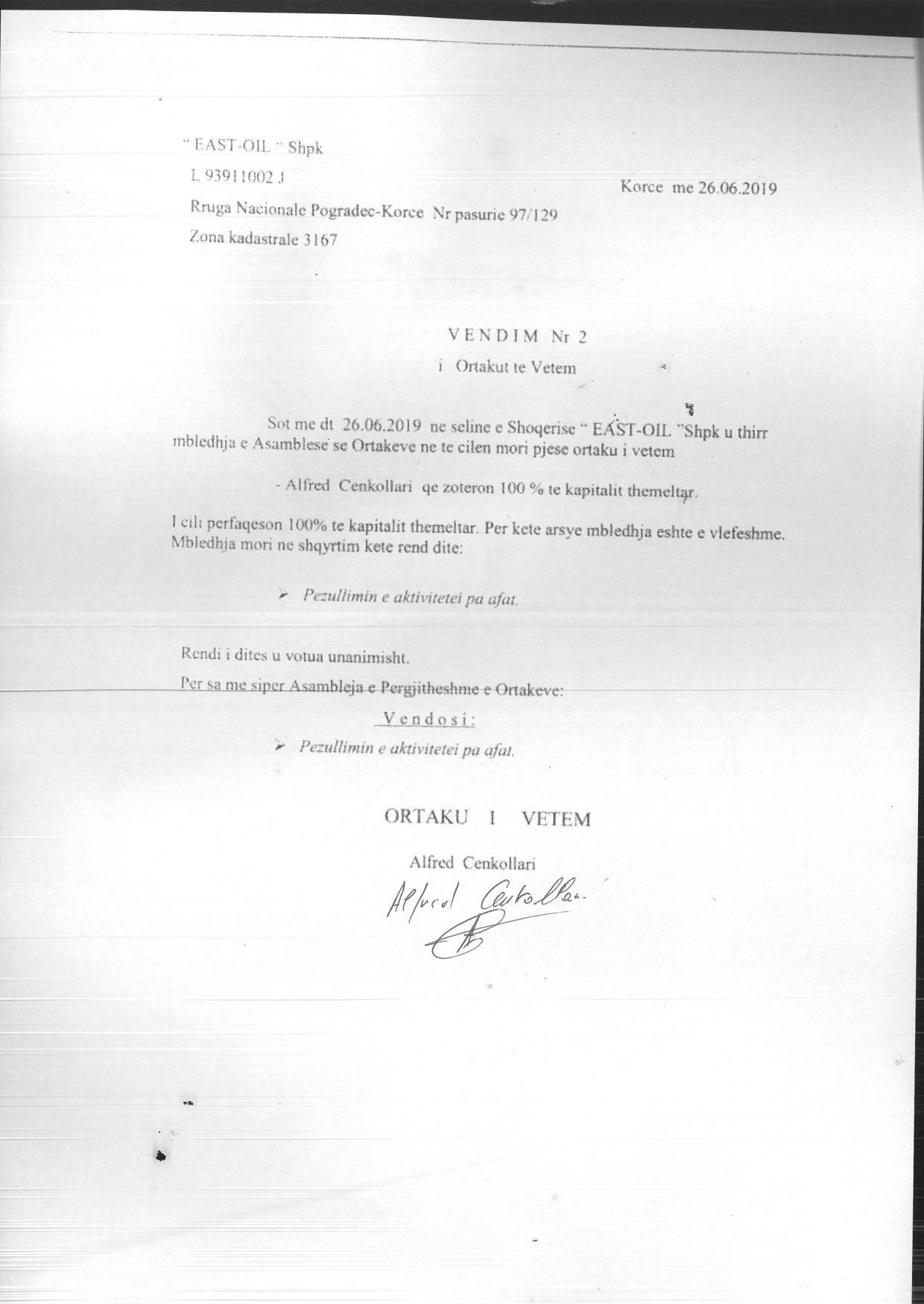 → Ekstrakt historik i regjistrit tregtar 11.01.2020 → Vendimi per pezullimin e aktivitetit 26.06.2019 |