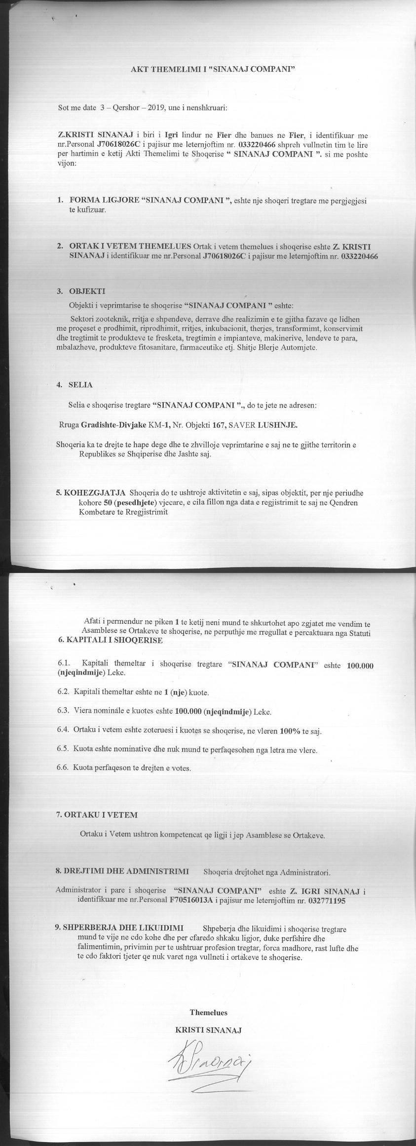 | Emërtime të tjera Tregtare: | SINANAJ COMPANI |
