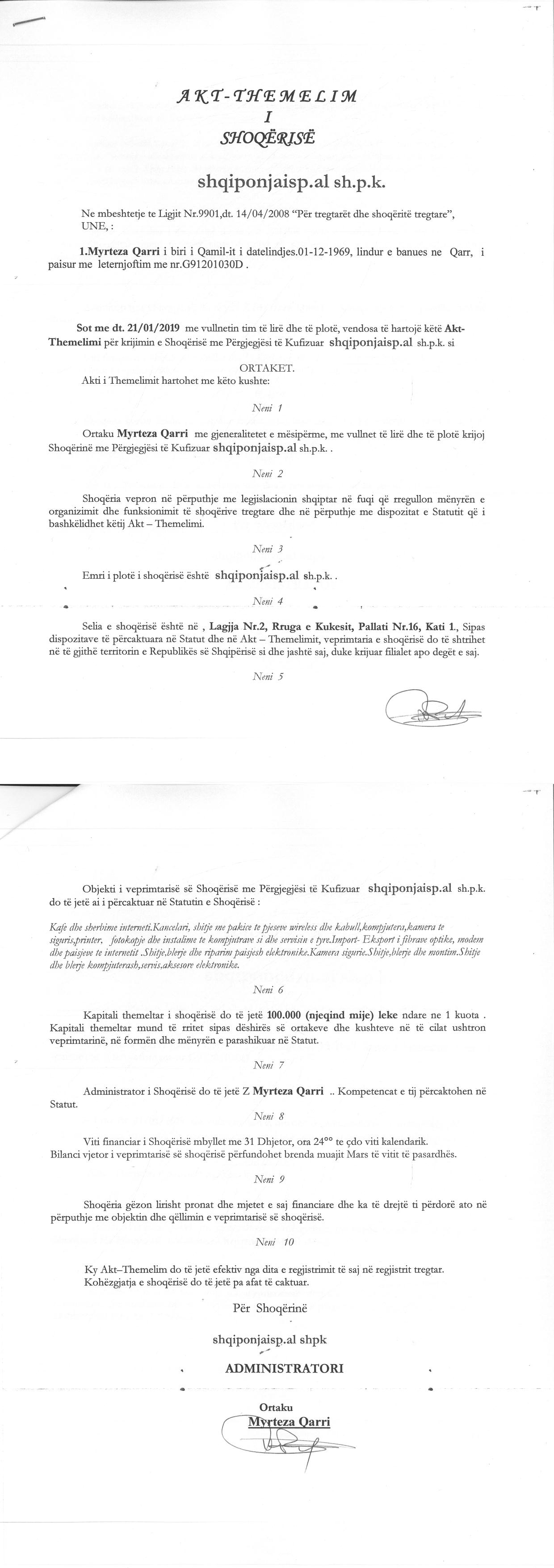 → Ekstrakt historik I regjistrit tregtar (15.04.2019) → Ekstrakti Historik i Regjistrit Tregtar date 26.05.2023 → Akt themelimi i Shoqerise |