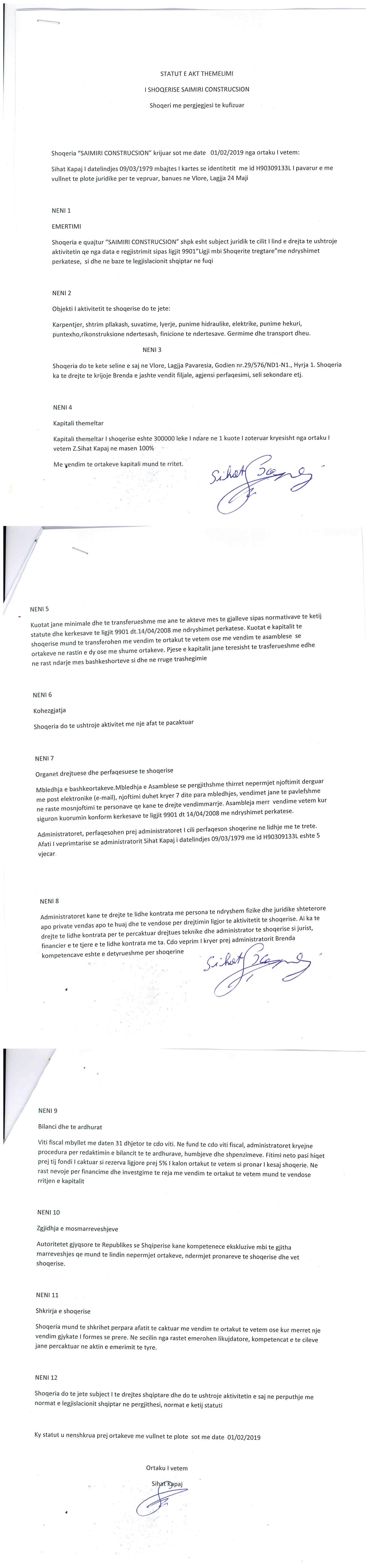 | Emërtime të tjera Tregtare: | SAIMIRI CONSTRUCSION |