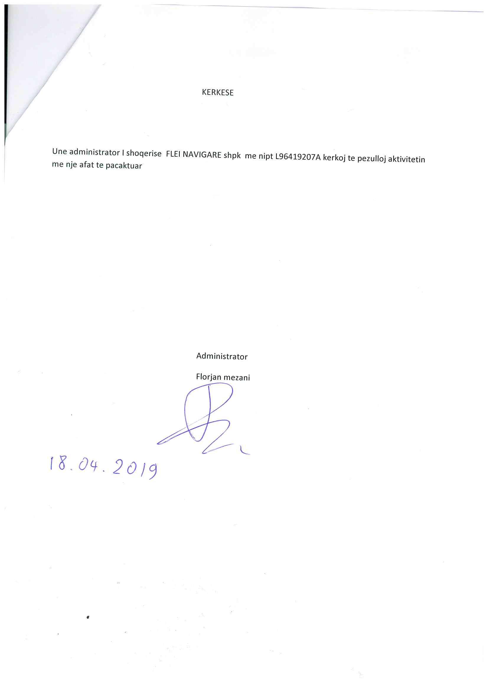 → Ekstrakt historik i regjistrit tregtar 10.12.2019 → Kerkesa per pezullimin e aktivitetit 18.04.2019 |