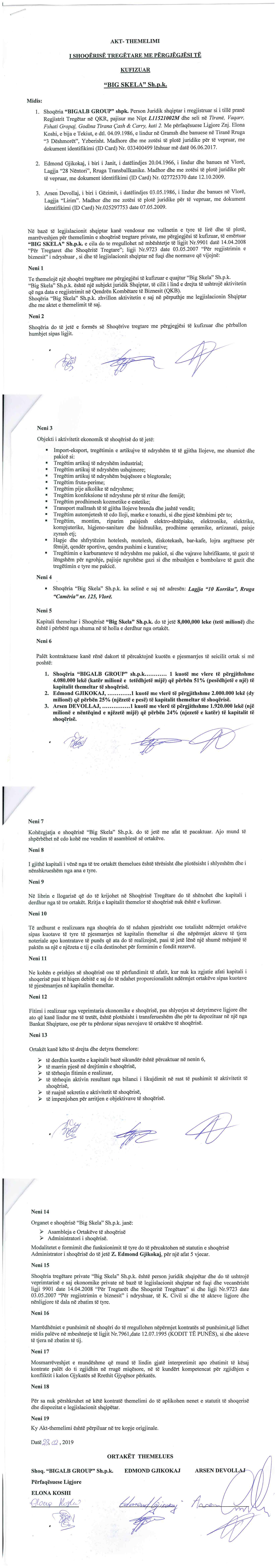 → Ekstrakt historik i regjistrit tregtar 23.12.2019 → Akti I themelimit → Vendimi per zmadhimin e kapitalit 08.05.2019 → Ekstrakt Historik i Regjistrit Tregtar date 14.08.2024 → Vendim i Asamblesë së Ortakëve, Zmadhim Kapitali datë 21.11.2019 → Ekstrakt Historik i Regjistrit te Pronareve Perfitues date 14.08.2024 |