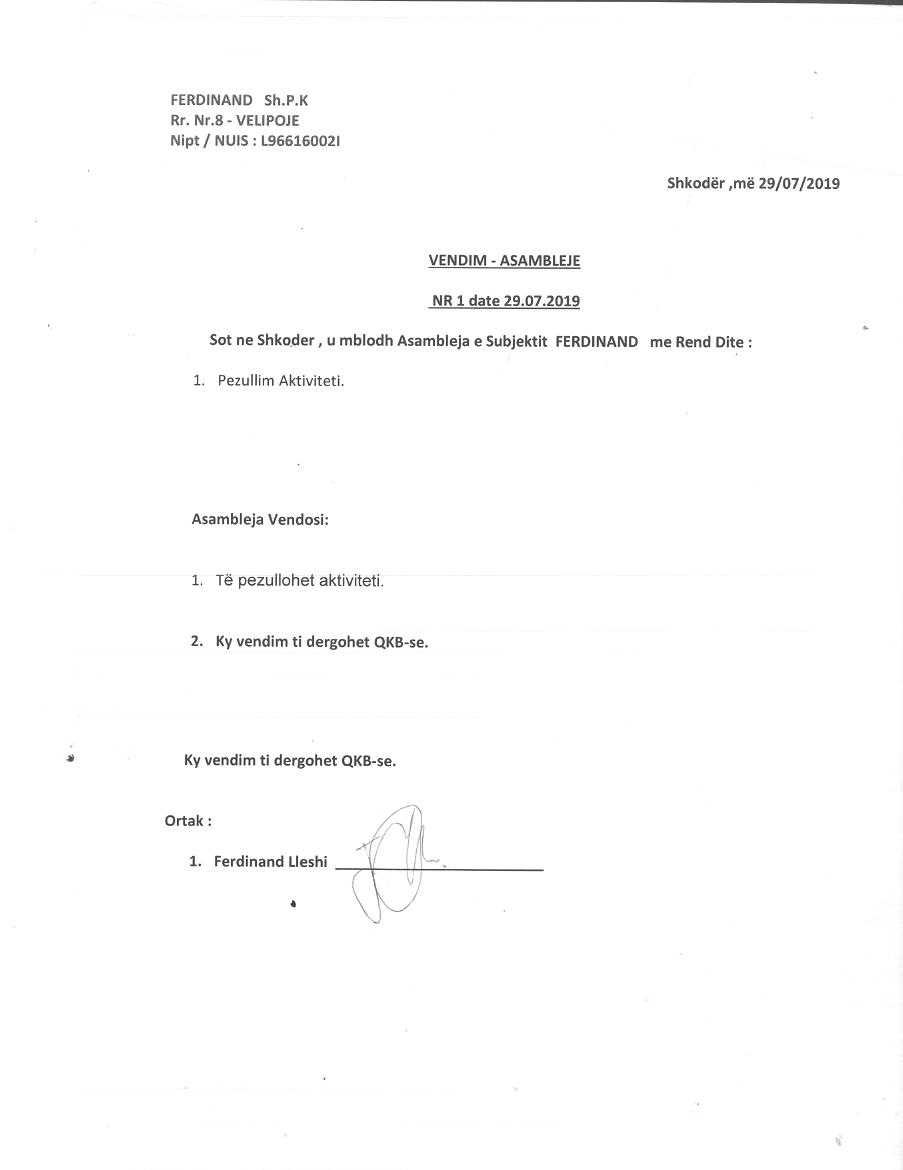 → Ekstrakt historik i regjistrit tregtar 29.01.2020 → Statuti I shoqerise → Vendimi per pezullimin e aktivitetit te shoqerise 29.07.2019 |
