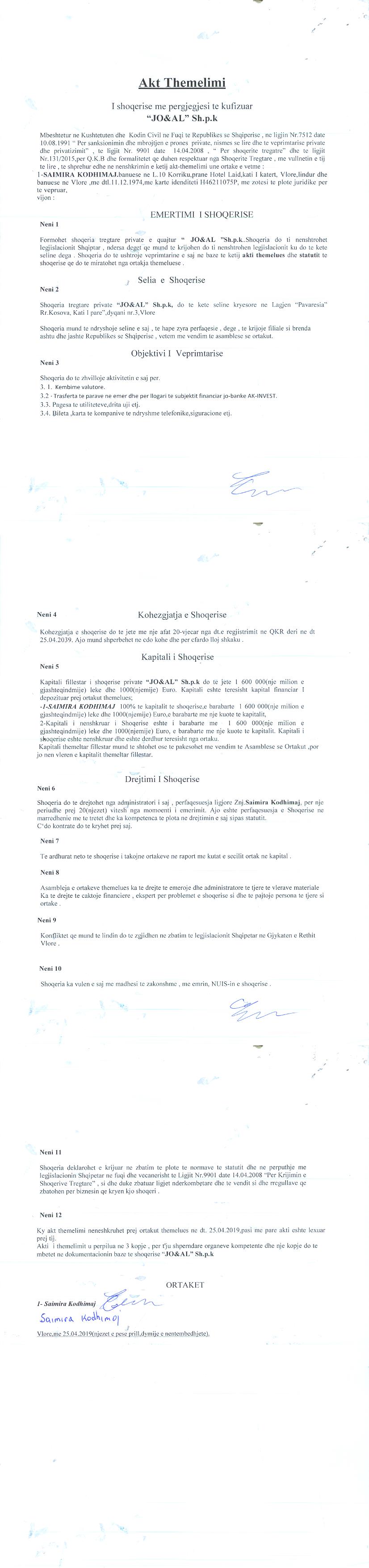 → Ekstrakt historik i regjistrit tregtar 03.02.2020 → Akti I themelimit |