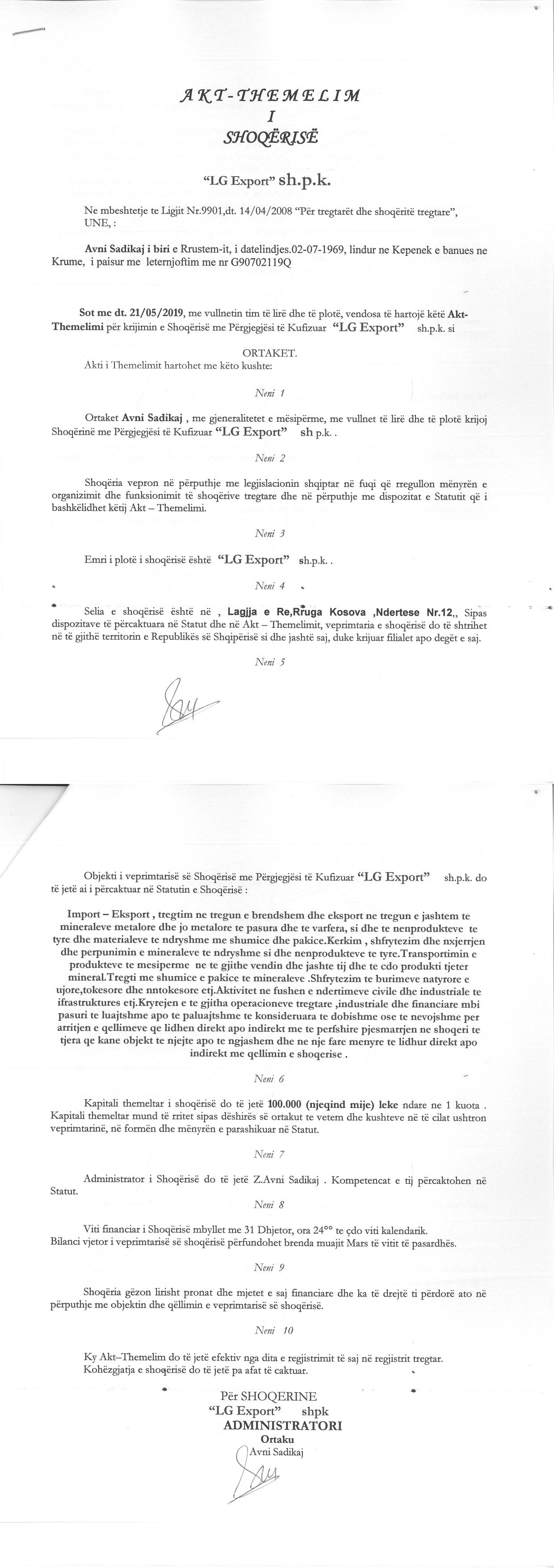 → Ekstrakt historik i regjistrit tregtar 12.02.2020 → Akti I themelimit |