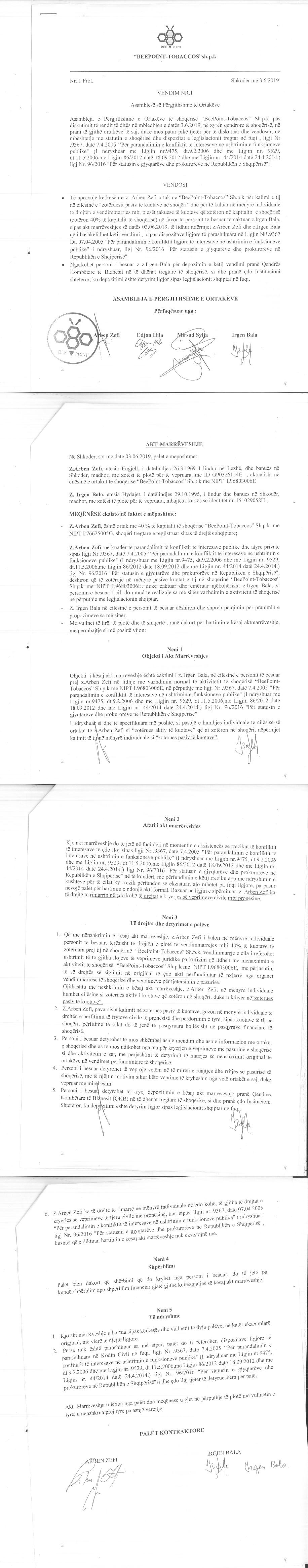 → Ekstrakt historik i regjistrit tregtar 23.08.2019 → Vendim I asamblese 03.06.2019 dhe Akt Marreveshje 03.06.2019 |