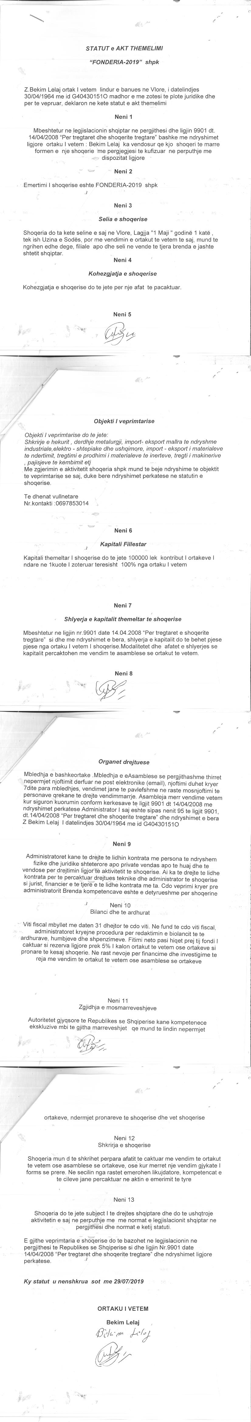 → Ekstrakti Historik I Regjistrit Tregtar date 11.11.2019 → Statuti I Shoqerise |