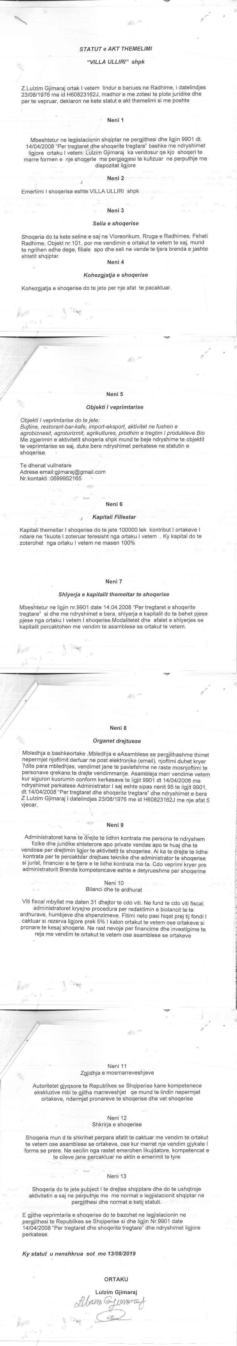 → Ekstrakti Historik I Regjistrit tregtar date 15.11.2019 → Statuti I Shoqerise |