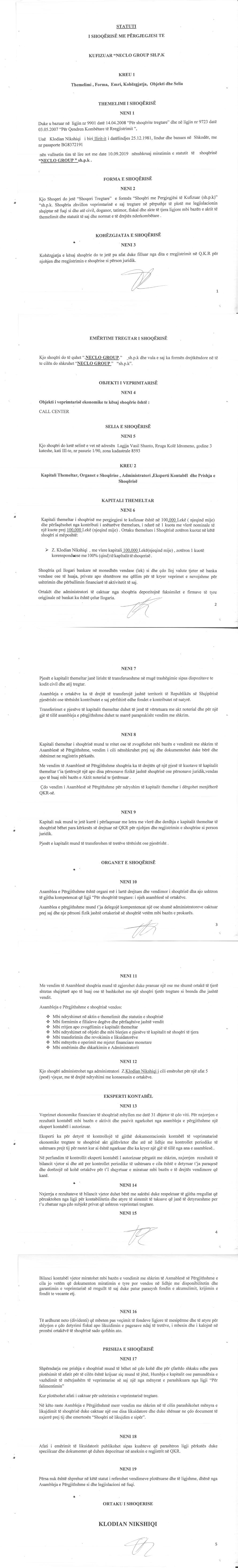 → Ekstrakti Historik I Regjistrit Tregtar date 25.11.2019 → Statuti I Shoqerise |
