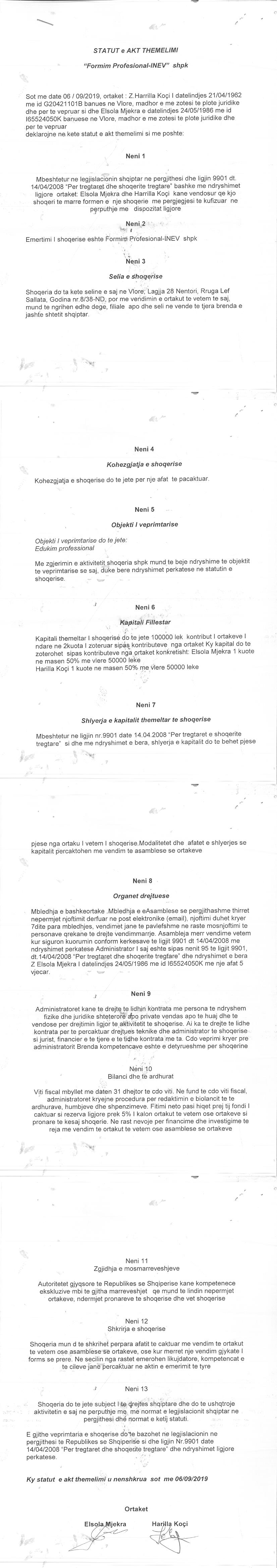 → Ekstrakti Historik I Regjistrit Tregtar date 24.11.2019 → Statuti I Shoqerise |