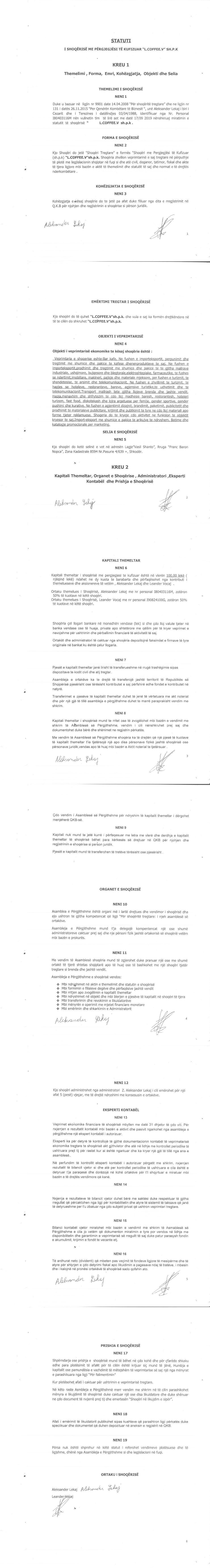 → Ekstrakti Historik I Regjistrit Tregtar date 06.12.2019 → Statuti I Shoqerise |
