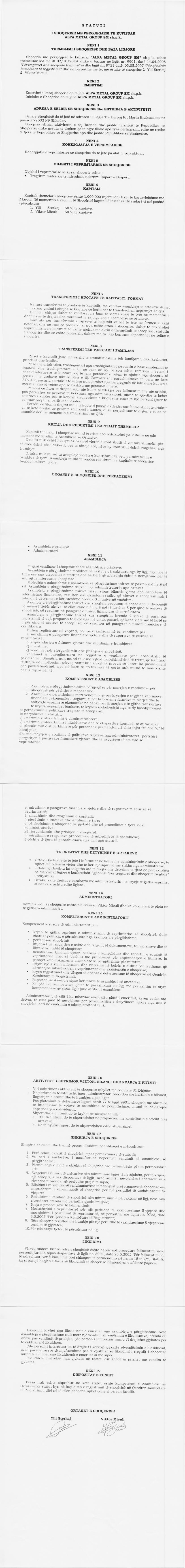 → Ekstrakti Historik i Regjistrit Tregtar date 14.12.2019 → Statuti i Shoqerise |