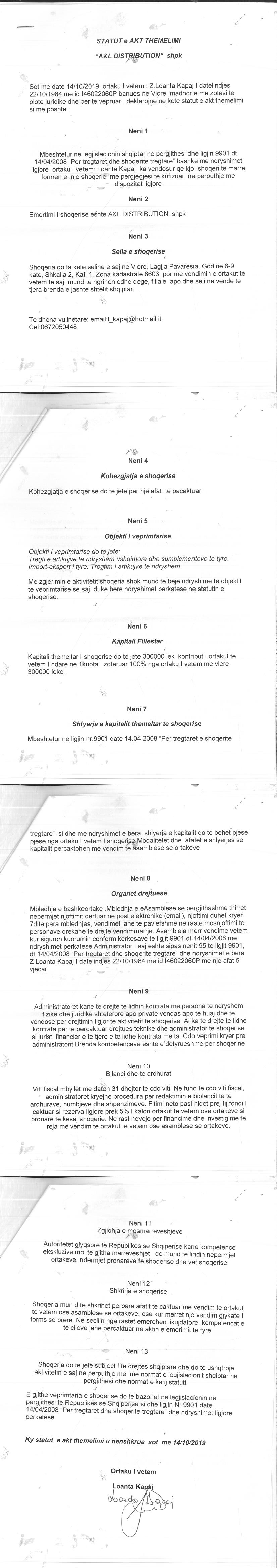 | Emërtime të tjera Tregtare: | A&L DISTRIBUTION |