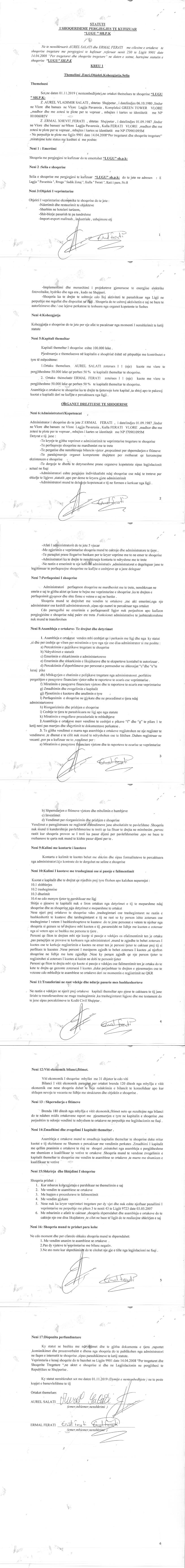 → Ekstrakti Historik i Regjistrit Tregtar date 06.01.2020 → Statuti I Shoqerise |