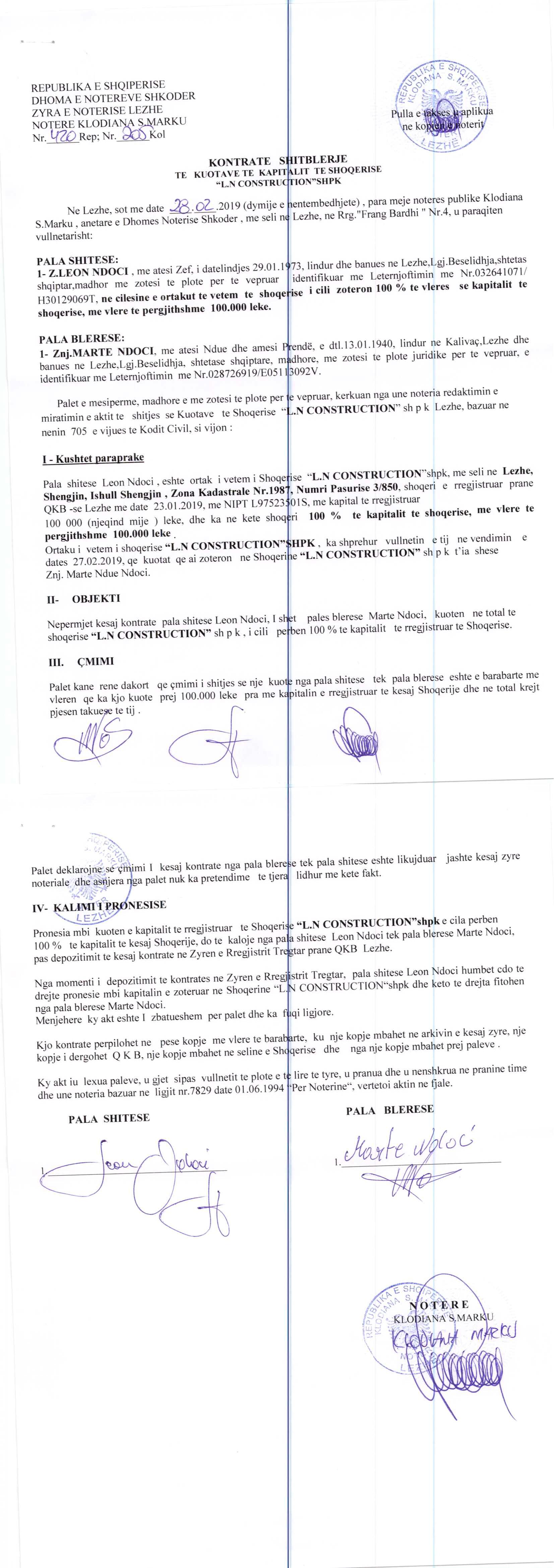 → Ekstrakt historik I regjistrit tregtar (15.04.2019) → Statuti I shoqerise → Kontrate shitblerje e kuotave te kapitalit 28.02.2019 |