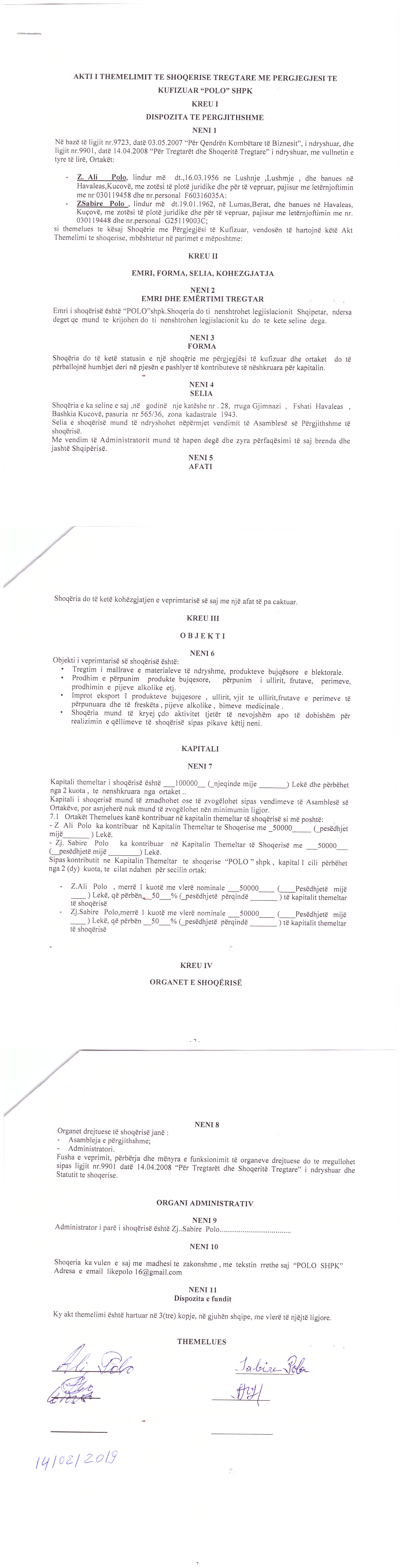 → Ekstrakt historik i regjistrit tregtar 10.12.2019 → Akti i themelimit |
