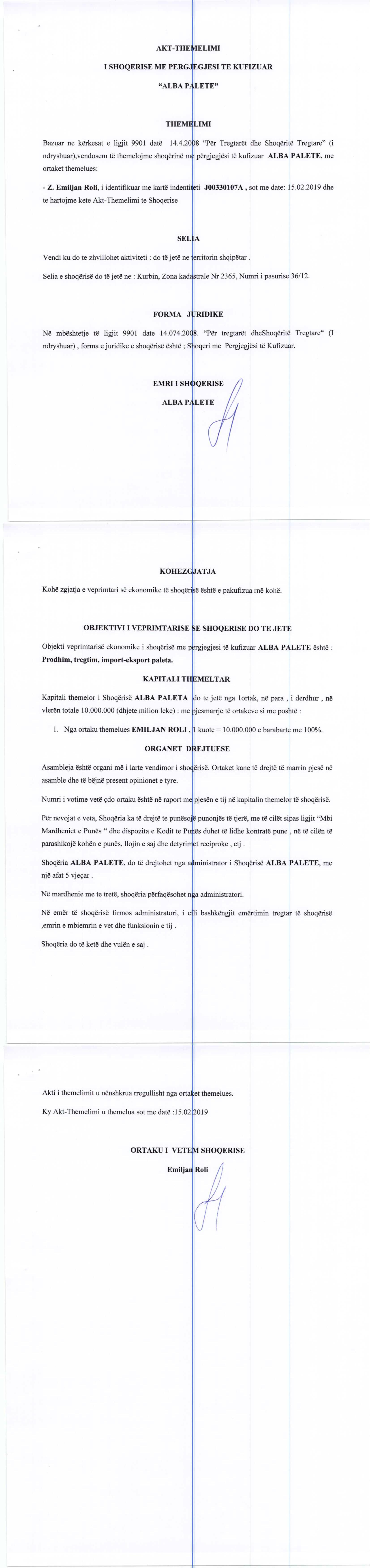 | Emërtime të tjera Tregtare: | "ALBA PALETE" |