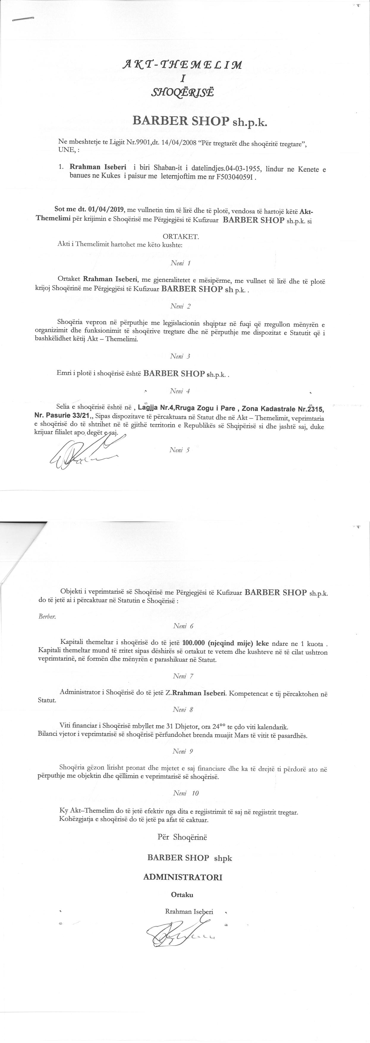 → Ekstrakt historik i regjistrit tregtar 22.01.2020 → Akti i themelimit |