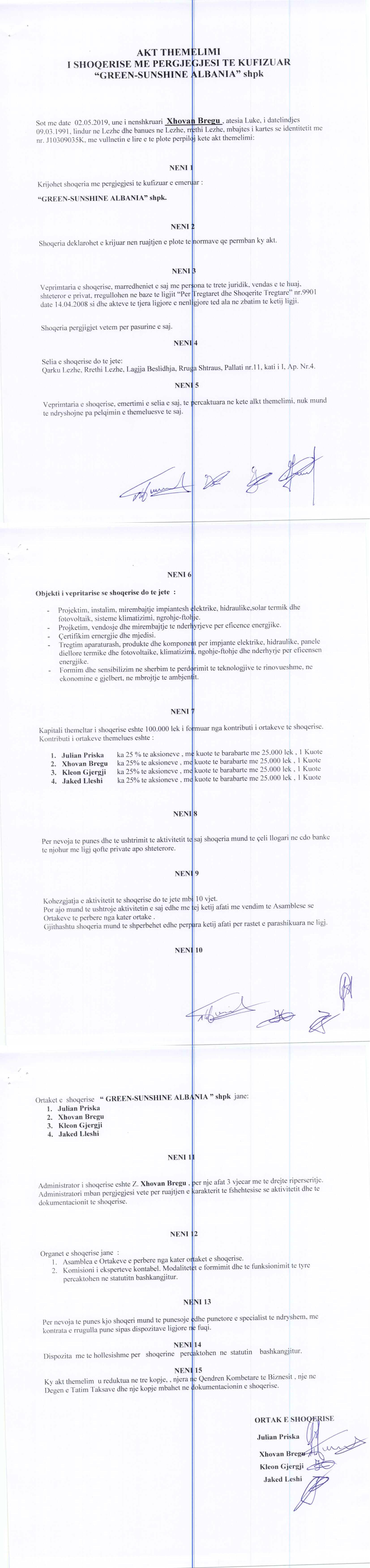 | Emërtime të tjera Tregtare: | "GREEN-SUNSHINE ALBANIA" shpk |