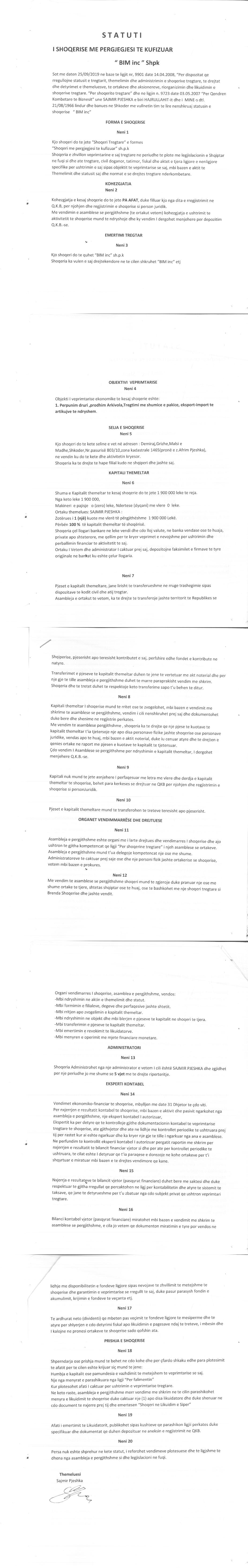 → Ekstrakti Historik i Regjistrit Tregtar date 09.12.2019 → Statuti i Shoqerise |