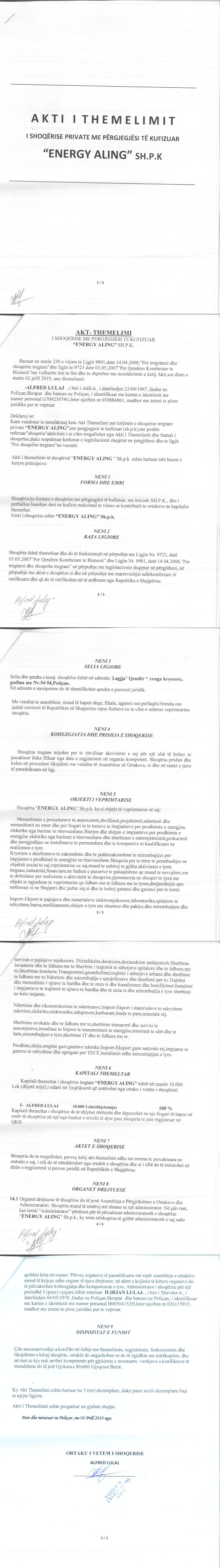 → Ekstrakt historik i regjistrit tregtar 29.01.2020 → Akti i themelimit |