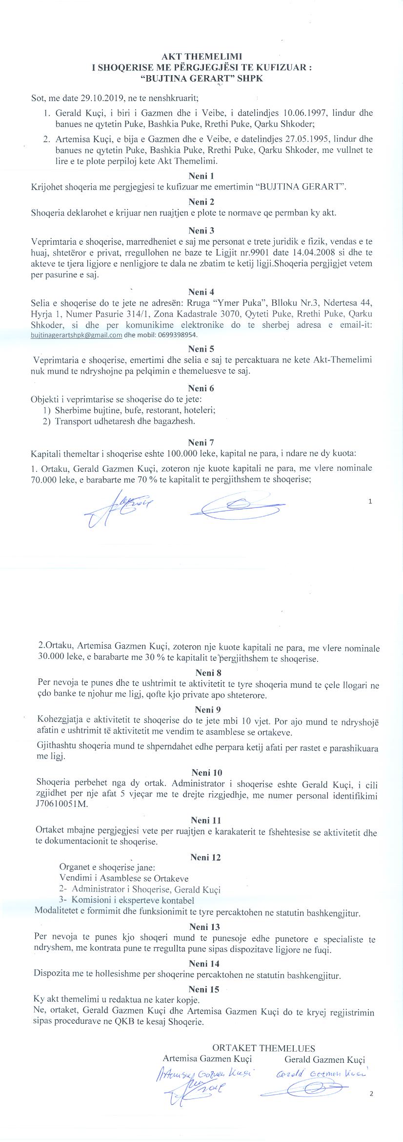 | Emërtime të tjera Tregtare: | BUJTINA GERART |