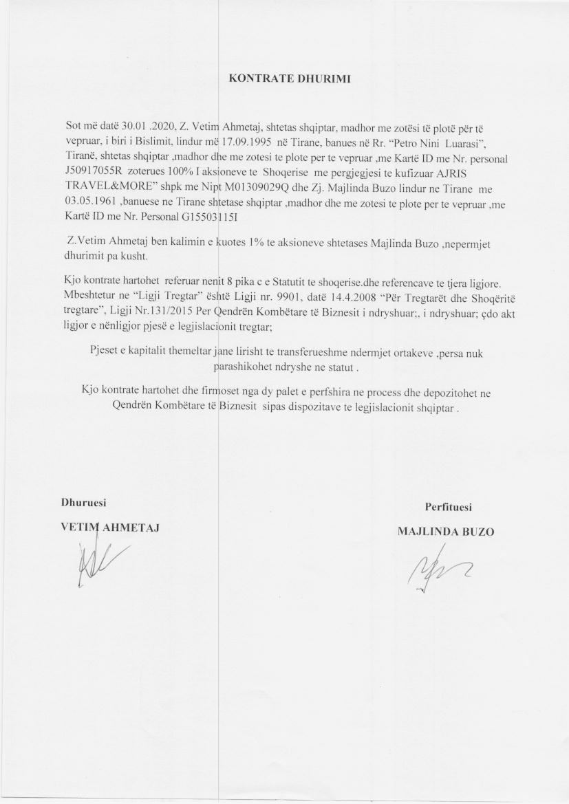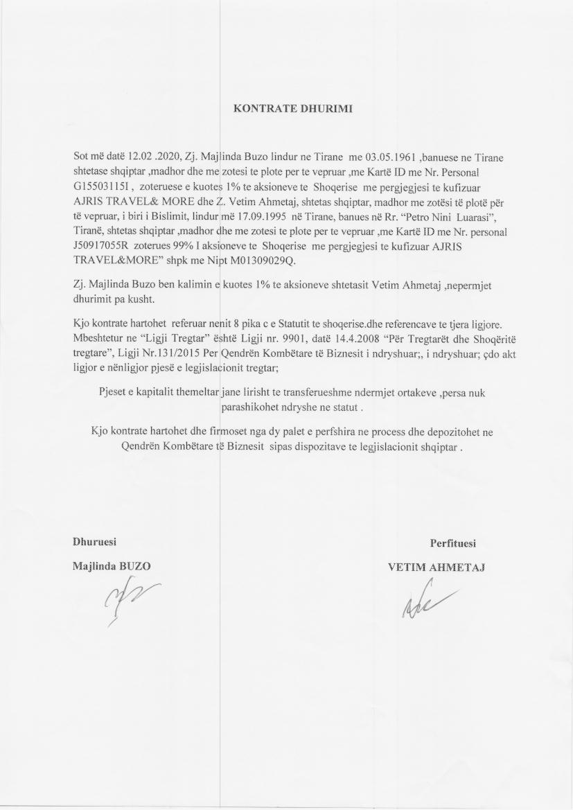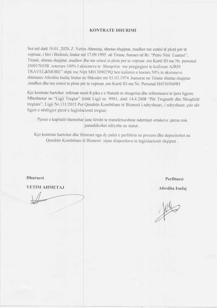 | Emërtime të tjera Tregtare: | AJRIS TRAVEL &MORE |