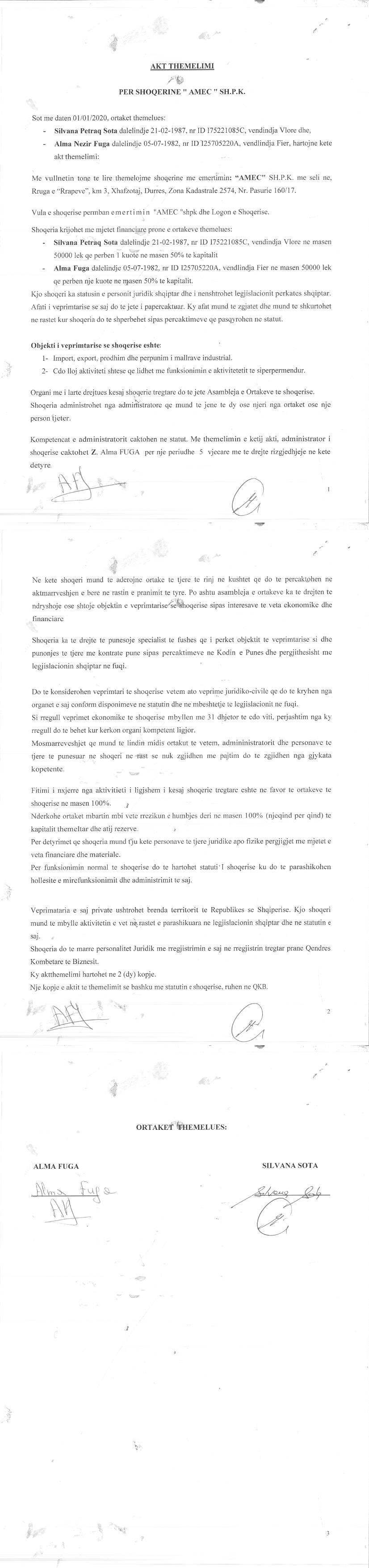 Objekti i Veprimtarisë: Import, eksport, prodhim dhe përpunim i mallrave industrial. Çdo lloj aktiviteti shtesë që lidhet me funksionimin e aktivitetit të sipërpërmendur.