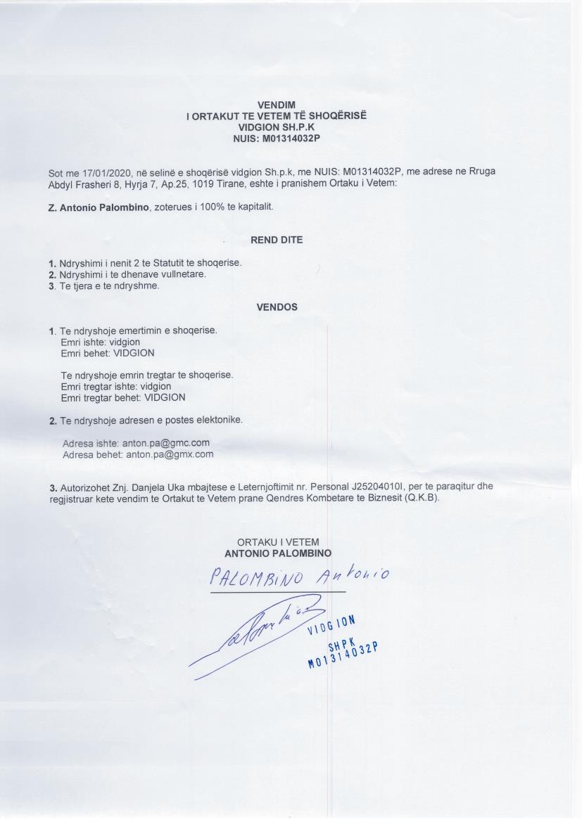 → Ekstrakti Historik i Regjistrit Tregtar date 31.03.2022 → Akt themelimi dhe Statuti i Shoqerise → Vendimi i asamblese se pergjithshme date 17.01.2020 |