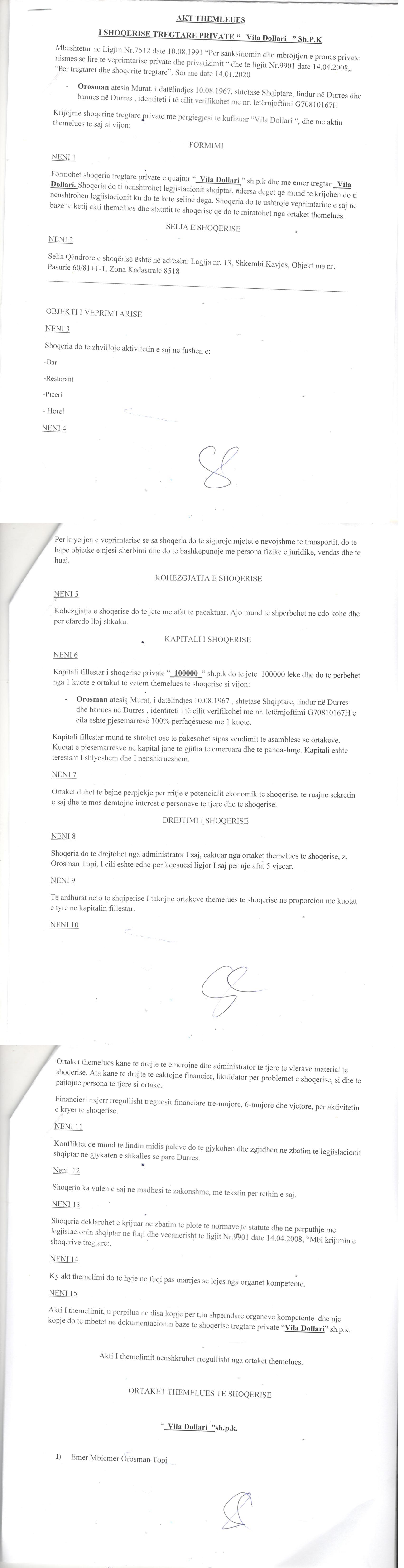 → Ekstrakti Historik i Regjistrit Tregtar date 31.03.2022 → Akt themelimi i Shoqerise → Vendimi i asamblese se pergjithshme date 20.04.2020 → Vendimi i asamblese se pergjithshme date 24.04.2020 → Vendimi i asamblese se pergjithshme date 28.04.2020 → Vendimi i asamblese se pergjithshme date 30.06.2021 |
