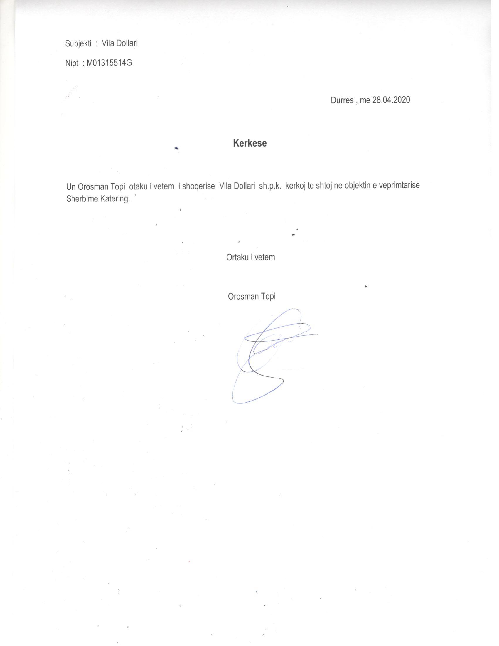 | Objekti i Veprimtarisë: | Hotel, restorant, piceri, bar - kafe. Sherbime katering. |