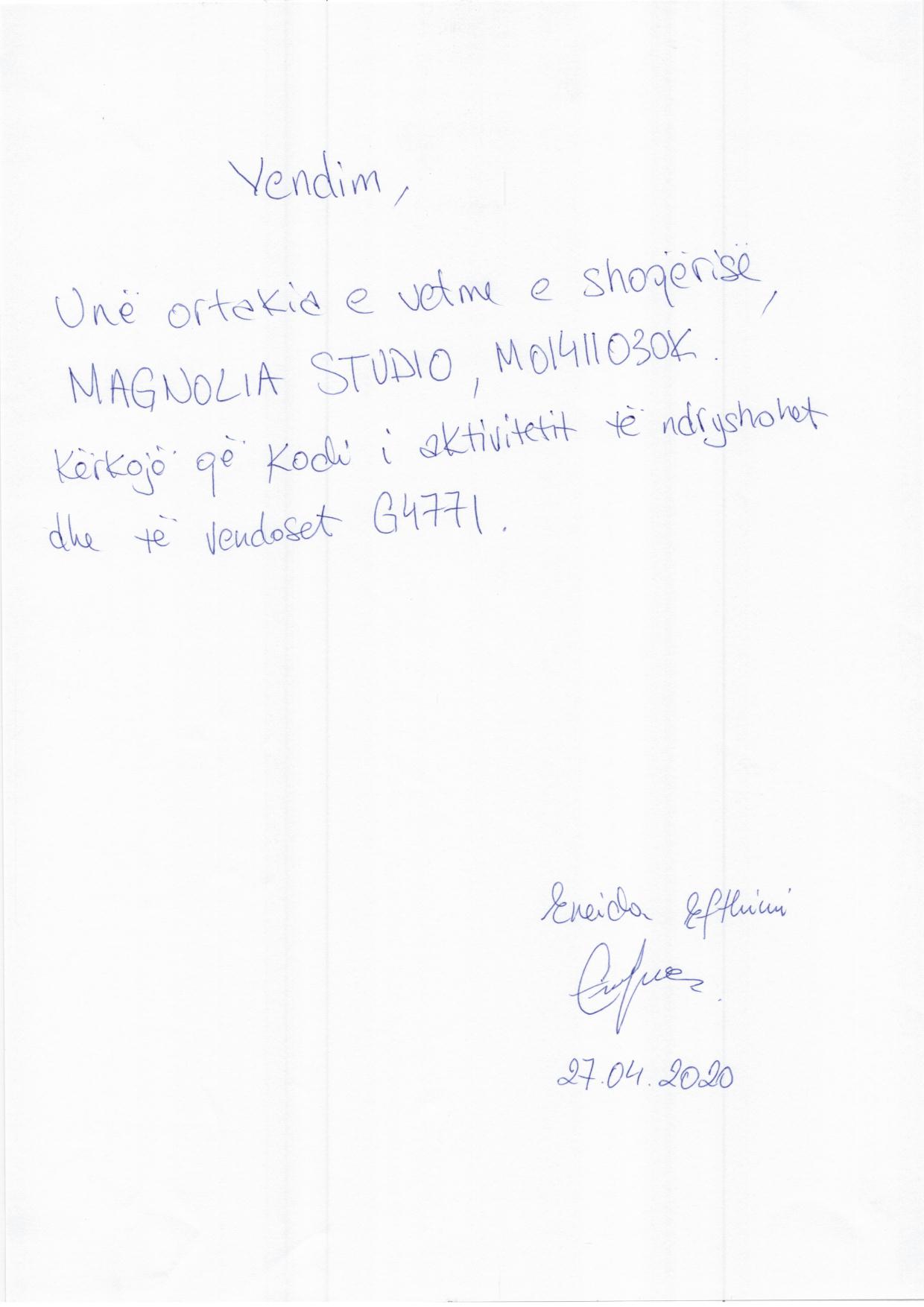 → Ekstrakti Historik i Regjistrit Tregtar date 20.04.2022 → Akt themelimi i Shoqerise → Vendim i Asamblese se Pergjithshme date 27.04.2020 → Vendim i Asamblese se Pergjithshme date 09.02.2022 |