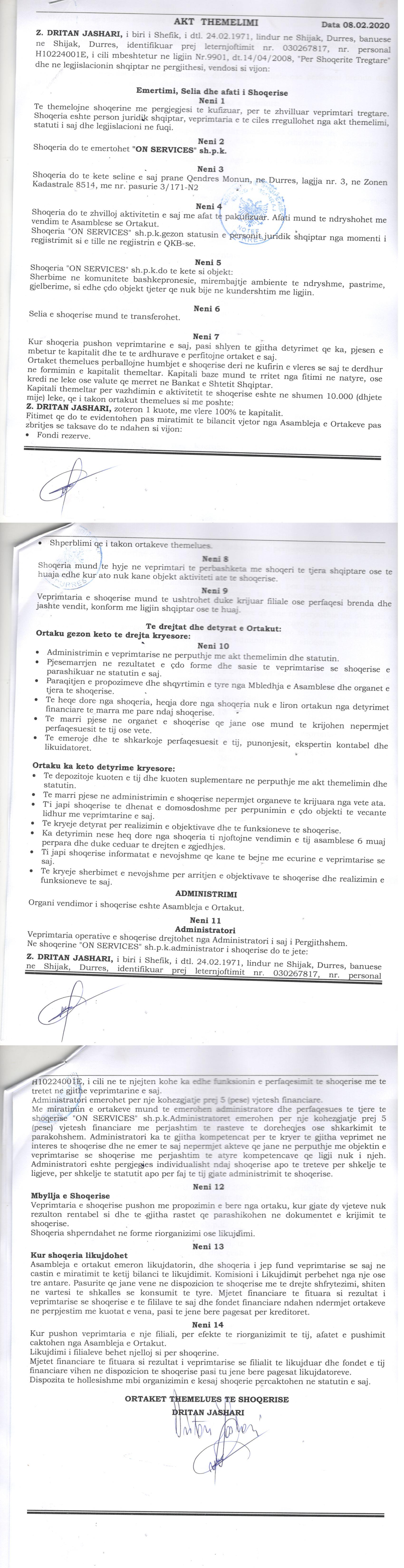 → Ekstrakti Historik i Regjistrit Tregtar date 22.04.2022 → Akt themelimi i Shoqerise → Vendim i Asamblese se Pergjithshme date 08.07.2020 → Vendim i Asamblese se Pergjithshme date 23.03.2021 |