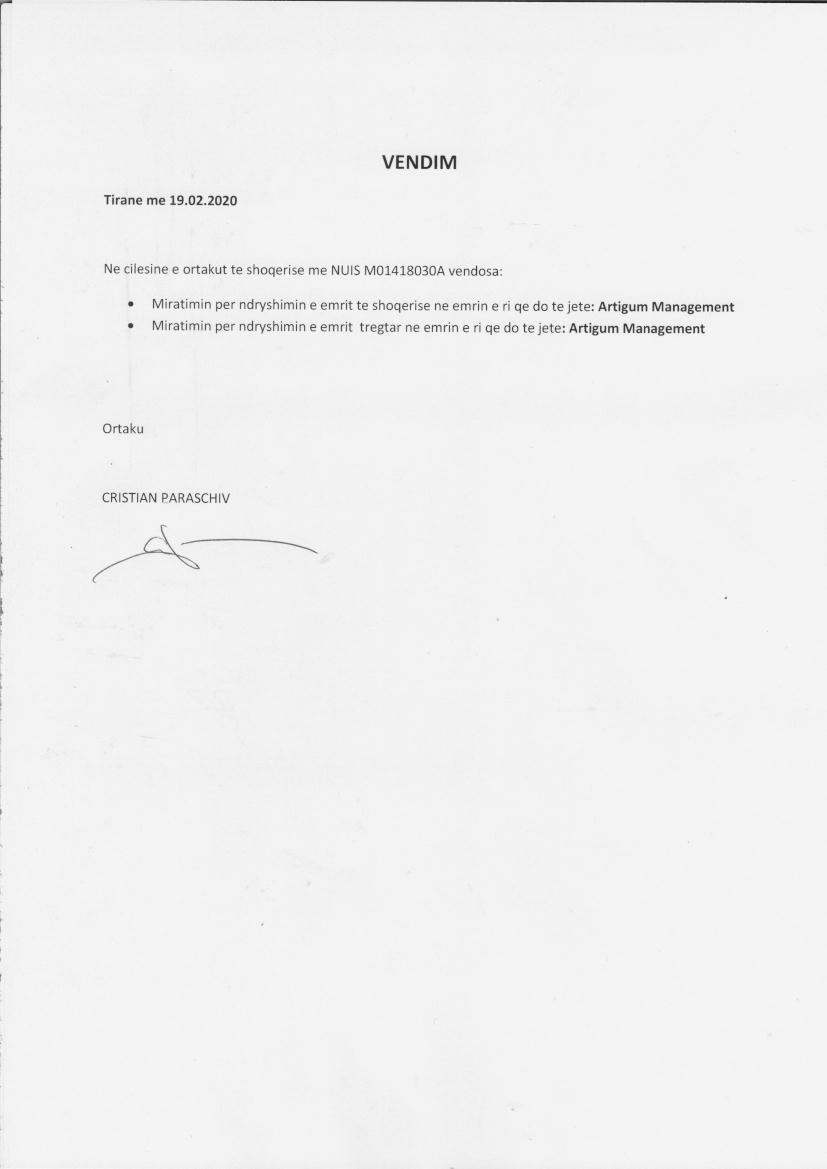 → Ekstrakti Historik i Regjistrit Tregtar date 22.04.2022 → Statuti i Shoqerise → Vendim i Asamblese se Pergjithshme date 19.02.2020 → Vendim i Asamblese se Pergjithshme date 10.09.2020 → Vendim i Asamblese se Pergjithshme date 20.10.2020 → Vendim i Asamblese se Pergjithshme date 02.02.2021 |