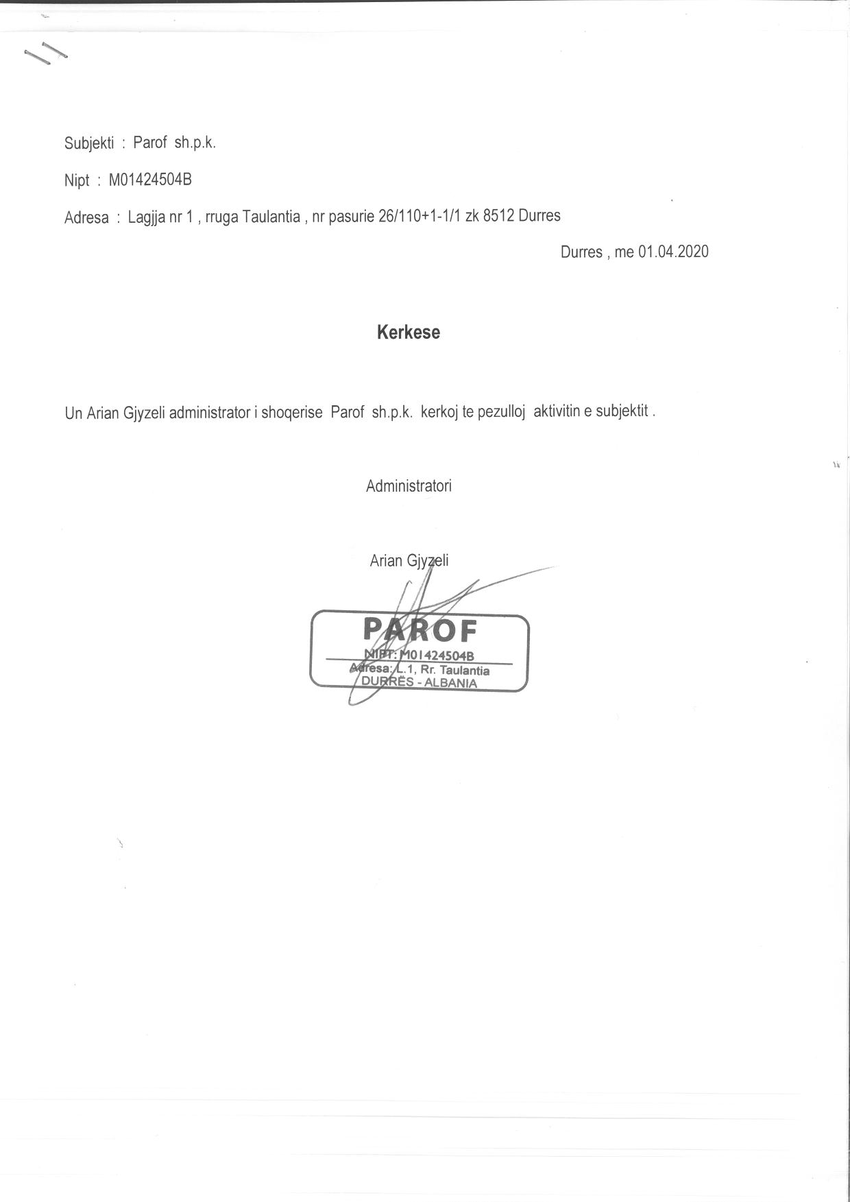 → Ekstrakti Historik i Regjistrit Tregtar date 28.04.2022 → Akt themelimi i Shoqerise → Vendim i Asamblese se Pergjithshme date 01.04.2020 → Vendim i Asamblese se Pergjithshme date 02.11.2020 → Vendim i Asamblese se Pergjithshme date 04.02.2021 |