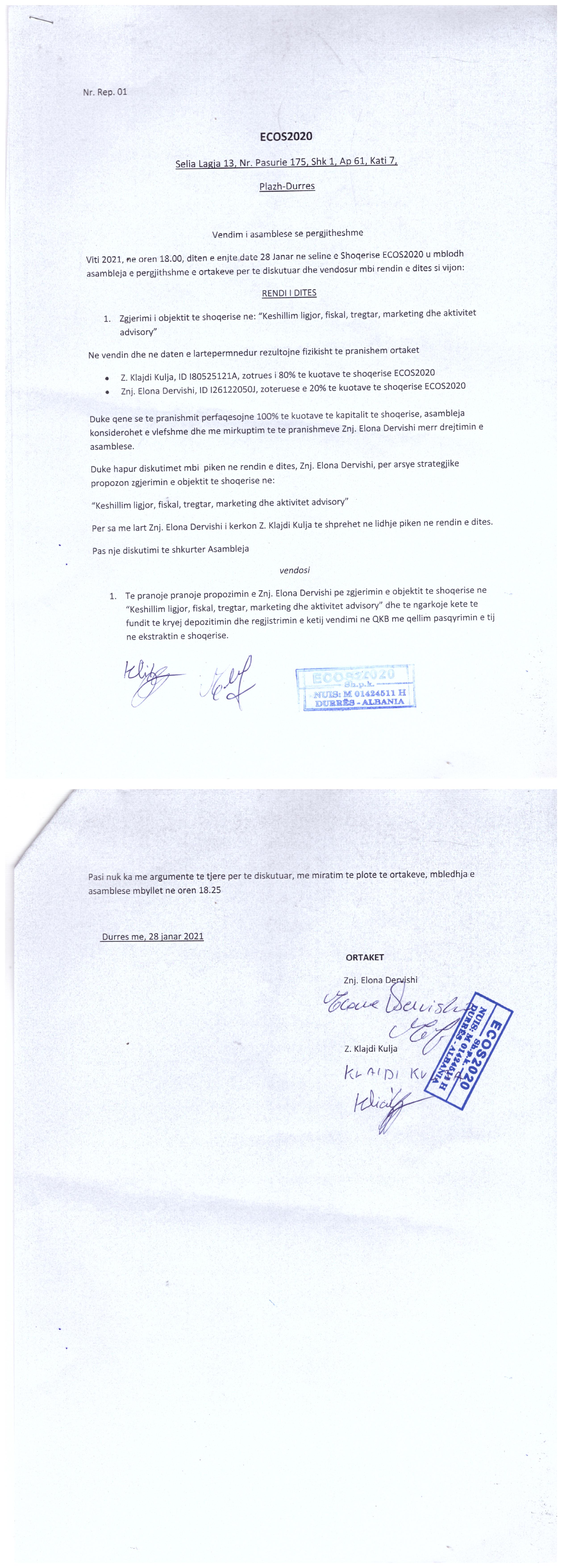 → Ekstrakti Historik i Regjistrit Tregtar date 28.04.2022 → Akt themelimi i Shoqerise → Vendim i Asamblese se Pergjithshme date 28.02.2021 → Vendim i Asamblese se Pergjithshme date 01.02.2021 → Vendim i Asamblese se Pergjithshme date 22.02.2021 → Kontrate e ShitBlerjes se Kuotave date 25.02.2021 → Vendim i Asamblese se Pergjithshme date 24.09.2021 → Vendim i Asamblese se Pergjithshme date 08.11.2021 → Kontrate e ShitBlerjes se Kuotave date 11.11.2021 |