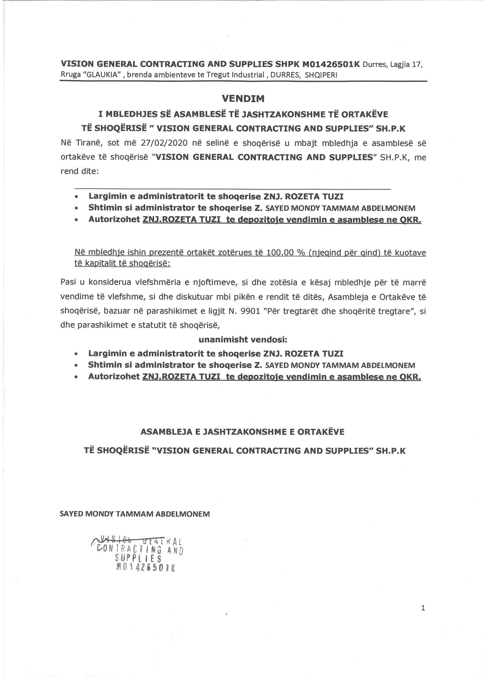 → Ekstrakti Historik i Regjistrit Tregtar date 28.04.2022 → Akt themelimi i Shoqerise → Vendim i Asamblese se Pergjithshme date 27.02.2020 |