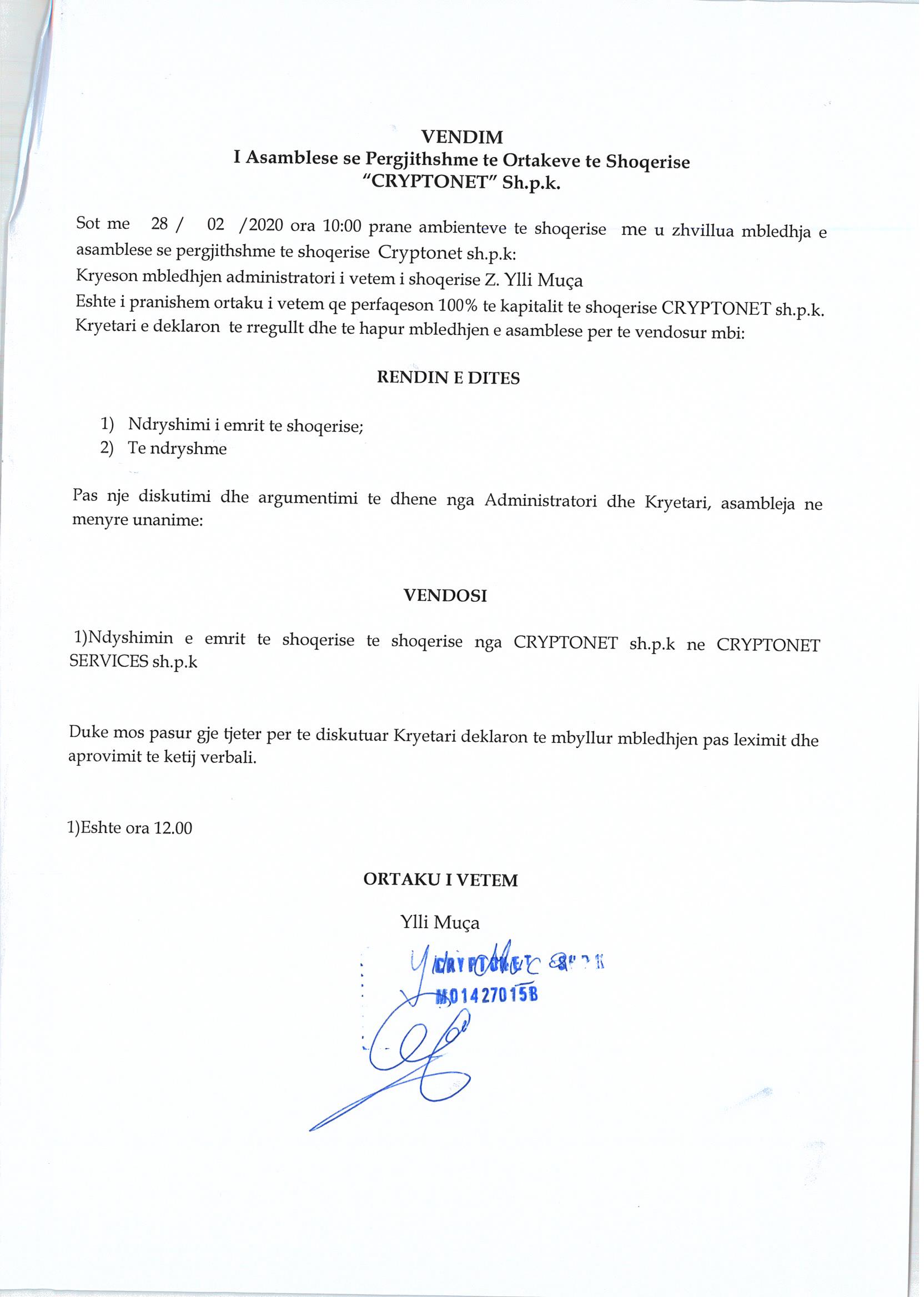 | Emërtime të tjera Tregtare: | CRYPTONET SERVICES |