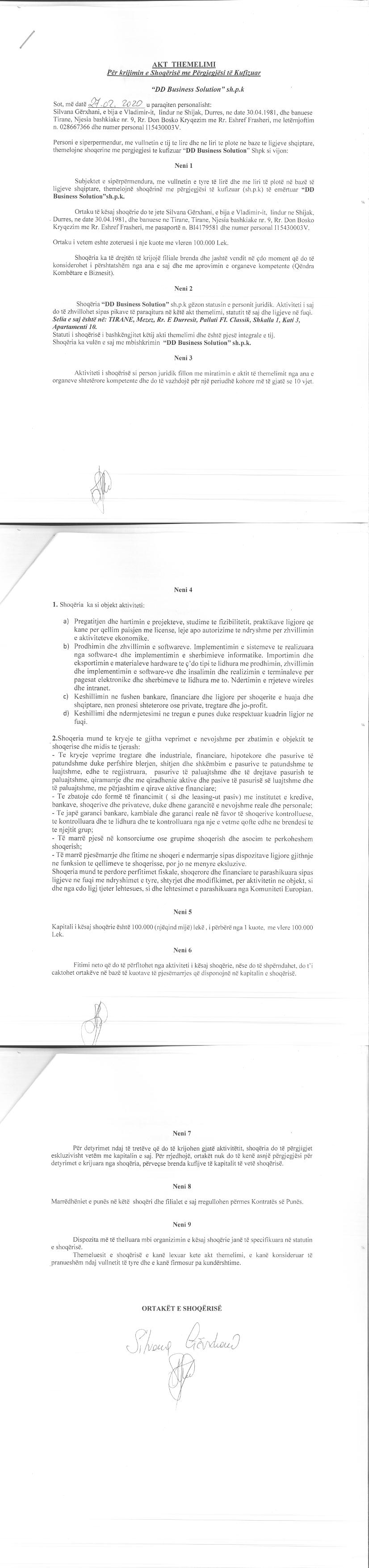 | Emërtime të tjera Tregtare: | DD Business Solution |