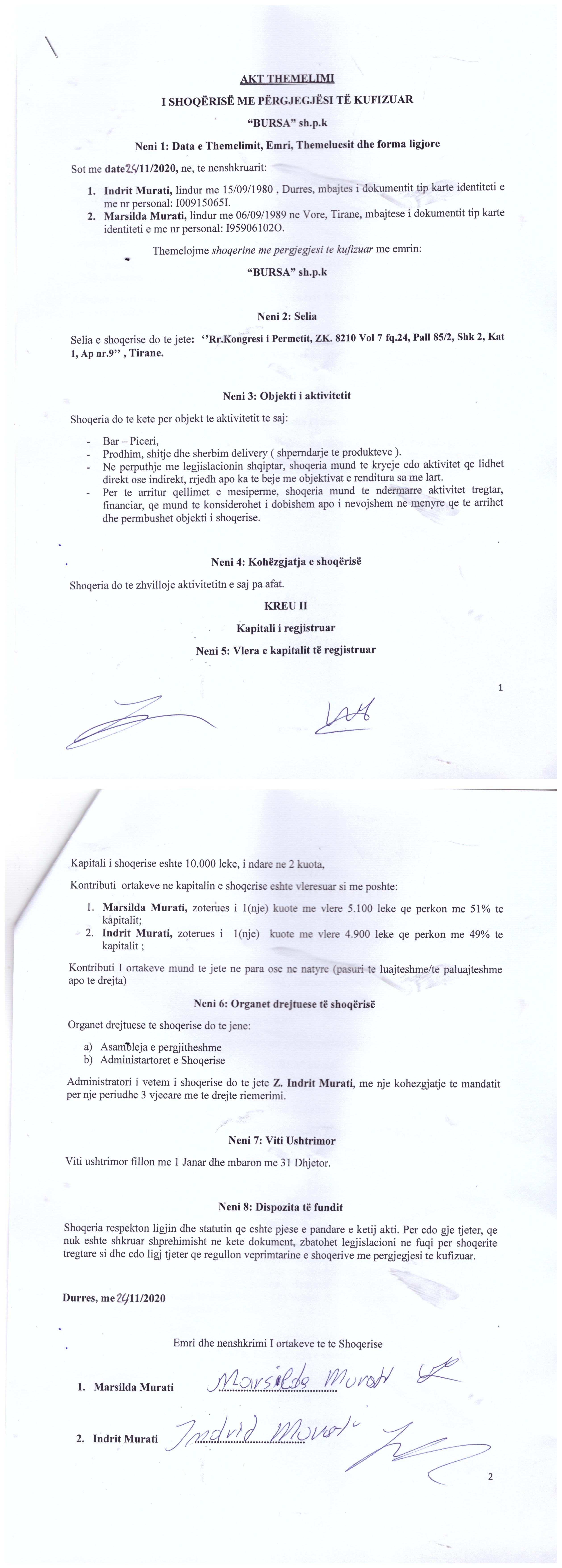 | Kapitali Themeltar(Lekë): | 10 000,00 |