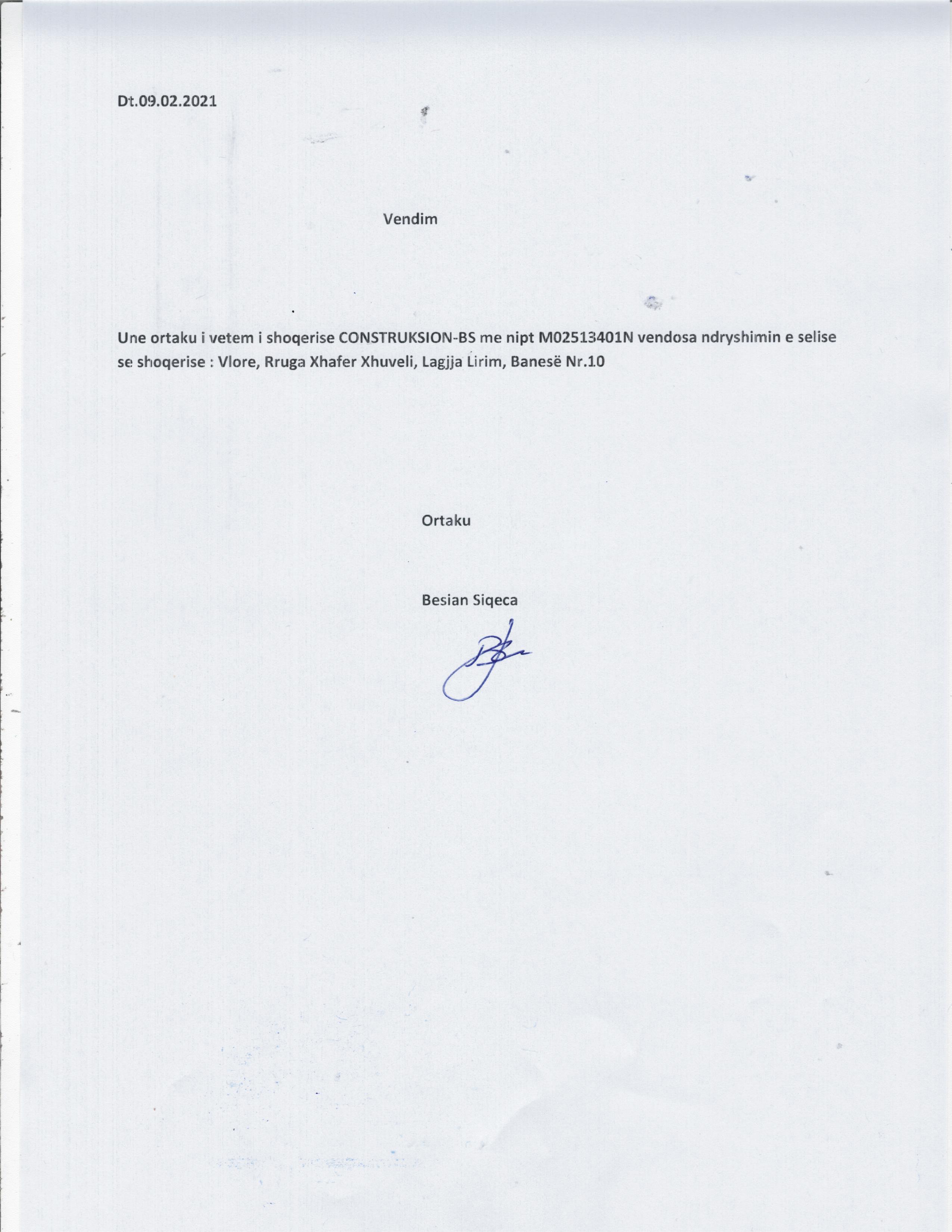 → Ekstrakti Historik i Regjistrit Tregtar date 30.03.2022 → Akt themelimi dhe Statuti i Shoqerise → Vendimi i asamblese se pergjithshme date 24.11.2020 → Vendimi i asamblese se pergjithshme date 09.02.2021 |