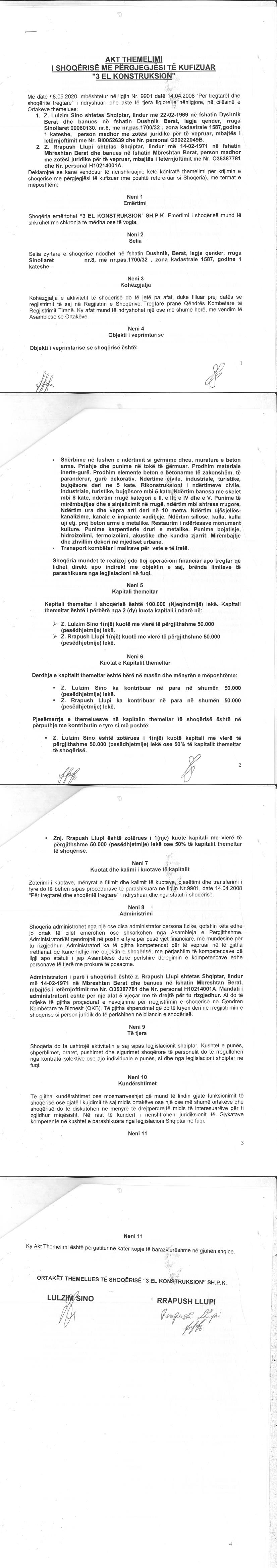 → Ekstrakti Historik i Regjistrit Tregtar date 07.09.2021 → Akti i themelimit te Shoqerise |
