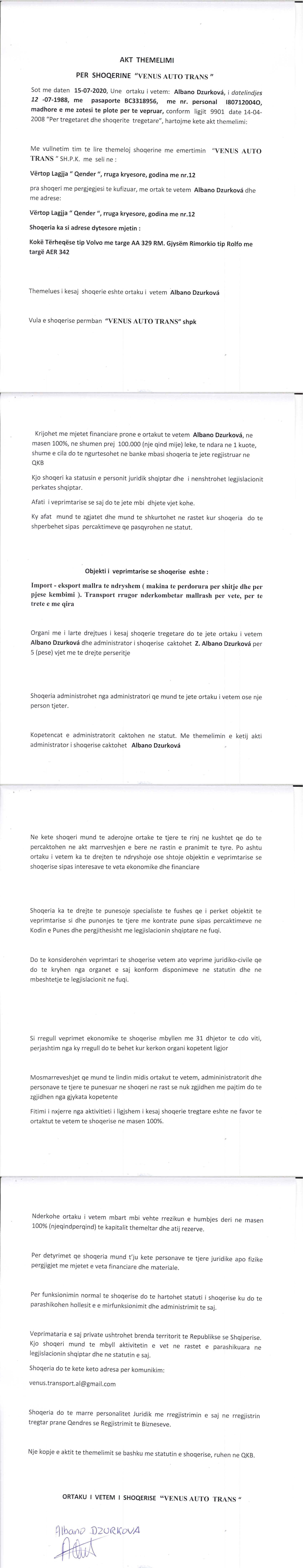 → Akti I Themelimit te Shoqerise |