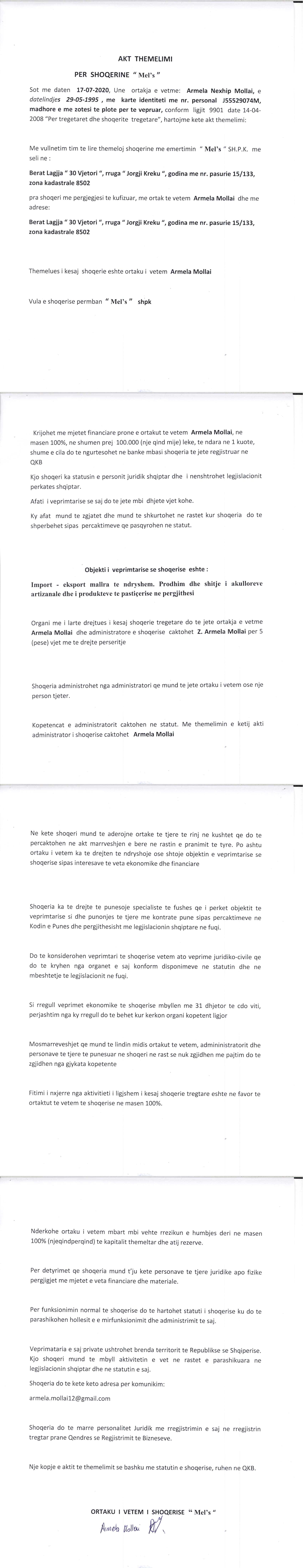 → Akti I Themelimit te Shoqerise |
