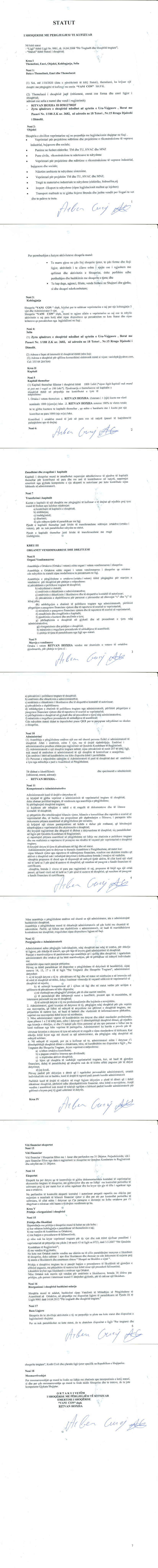 → Ekstrakti Historik I Regjistrit Tregtar date 08.10.2020 → Statuti I Shoqerise |