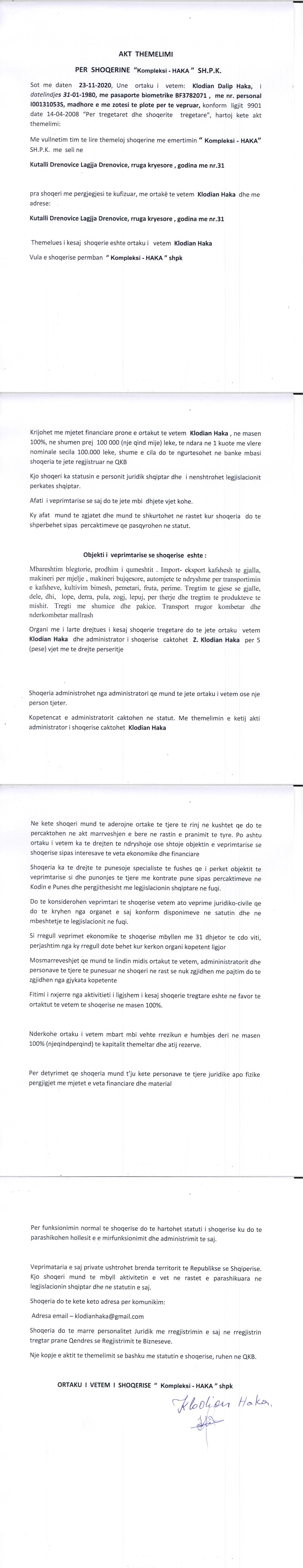 → Akti I Themelimit te Shoqerise |
