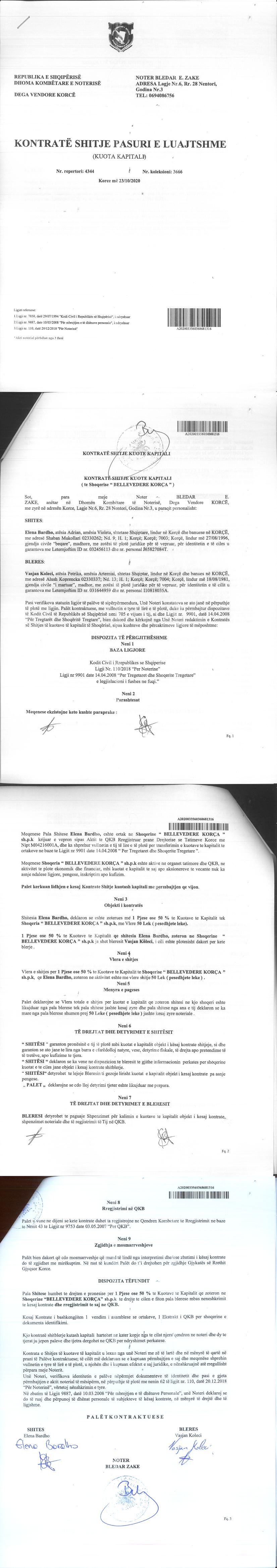 → Ekstrakti Historik I Regjistrit Tregtar date 17.06.2020 → Akti I themelimit te Shoqerise → Ekstrakt Historik i Regjistrit Tregtar date 14.04.2023 → Kontratë Shitje Kuotash datë 23.10.2020 → Kontratë për Shitjen e Kuotës datë 28.12.2021 → Kontratë Shitje Kuotash Kapitali datë 28.09.2022 → Ekstrakt Historik i Regjistrit te Pronareve Perfitues date 14.04.2023 |