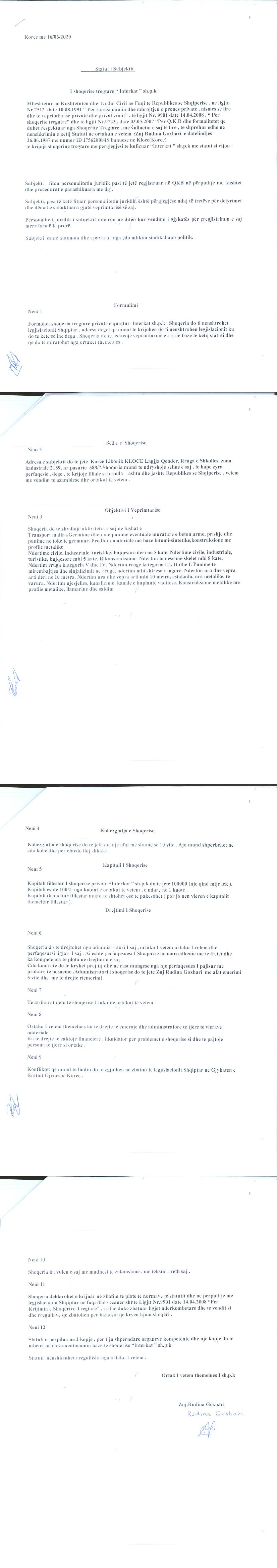 → Ekstrakti Historik I Regjistrit Tregtar date 22.06.2020 → Statuti I Shoqerise |