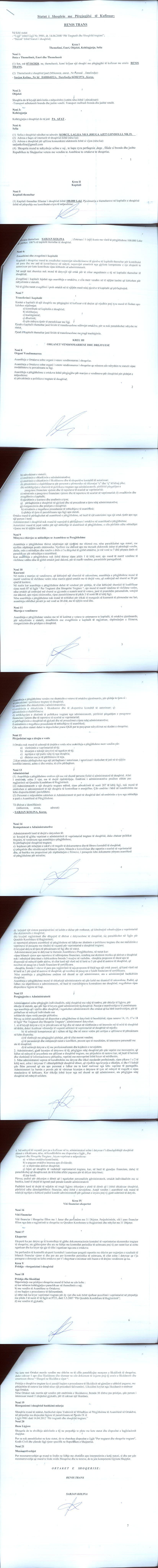 | Emërtime të tjera Tregtare: | RENIS TRANS |