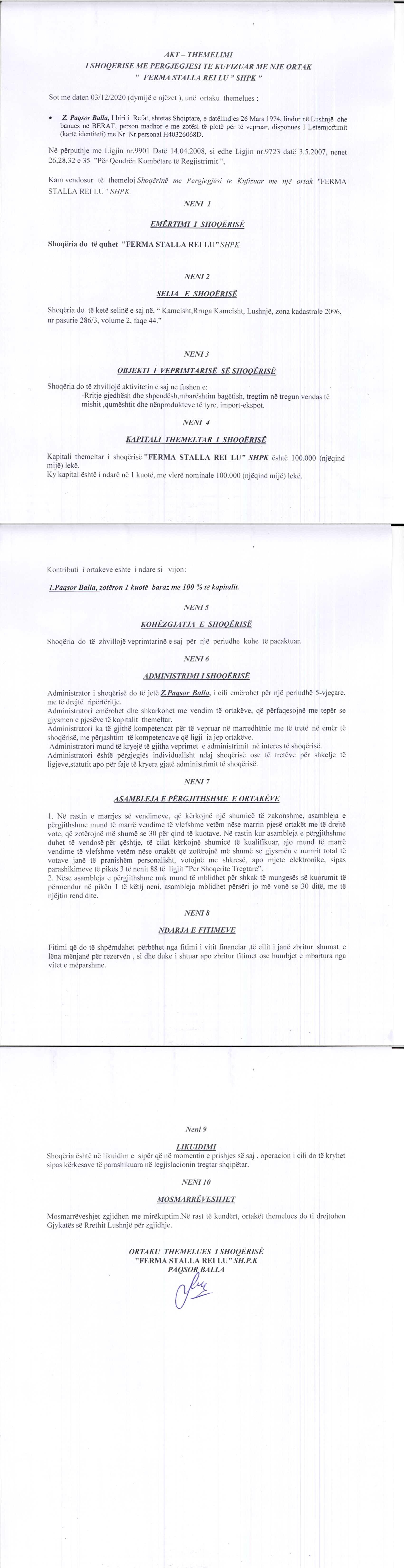 | Emërtime të tjera Tregtare: | FERMA STALLA REI LU |